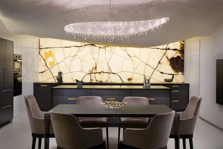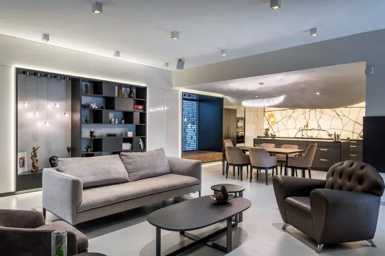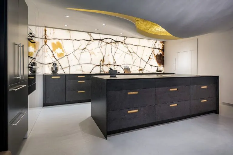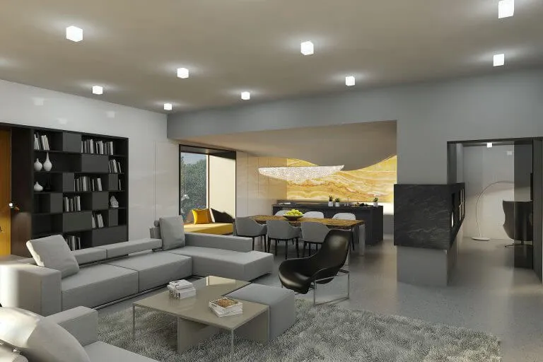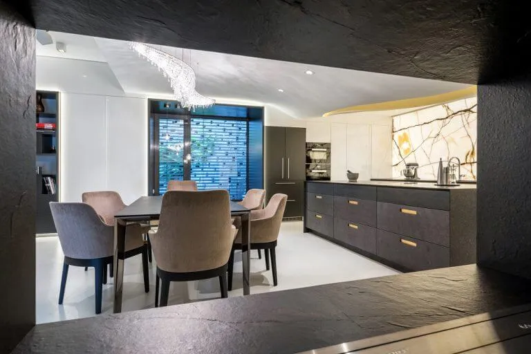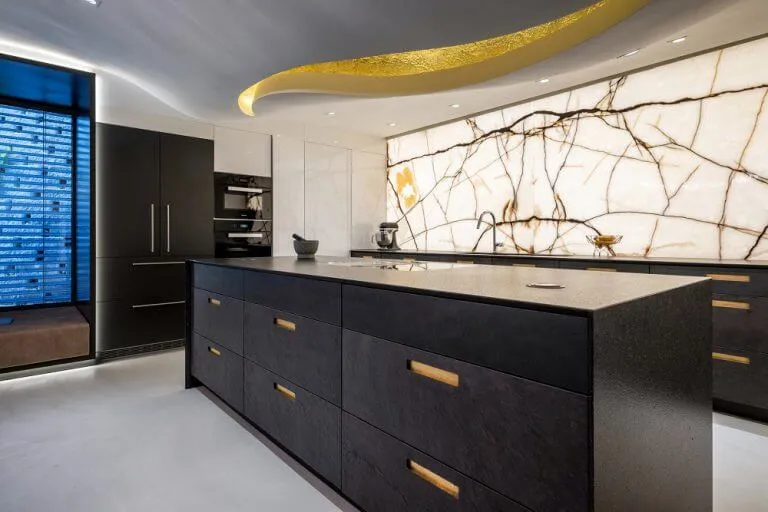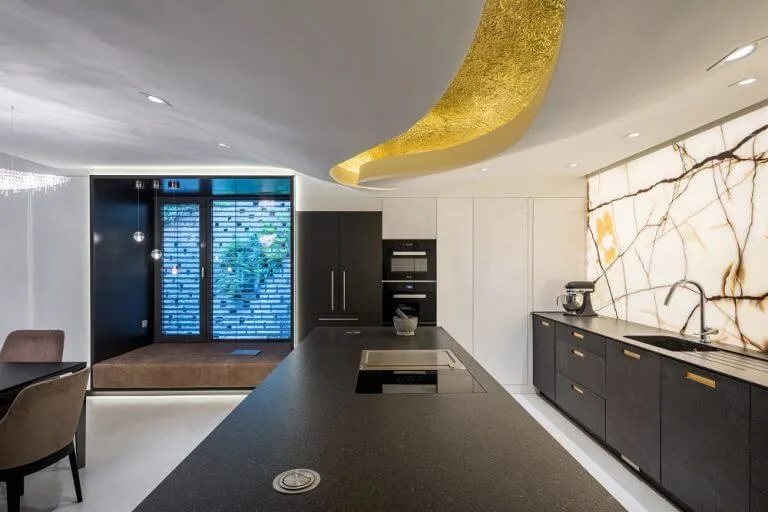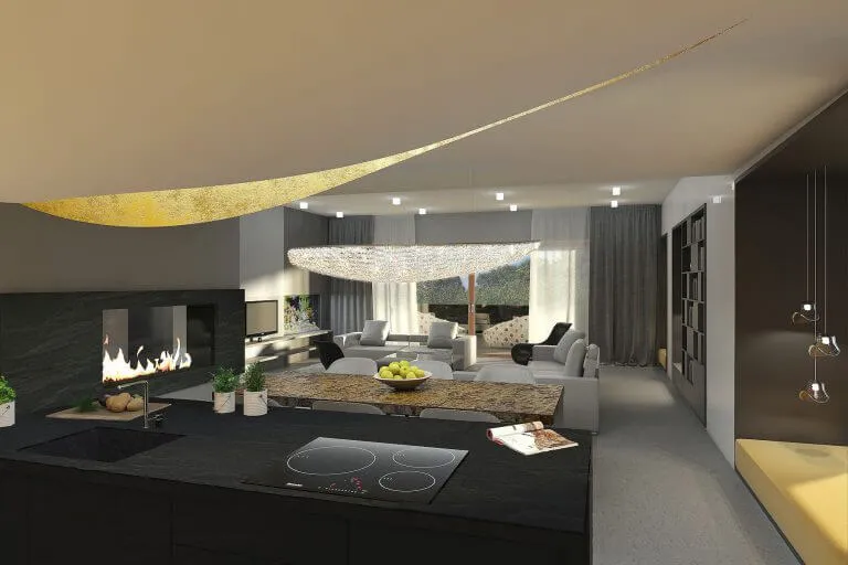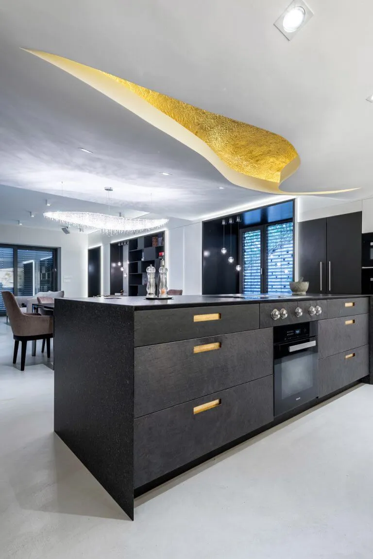 E villát az arany és a szürke kontrasztja teszi elegánssá.