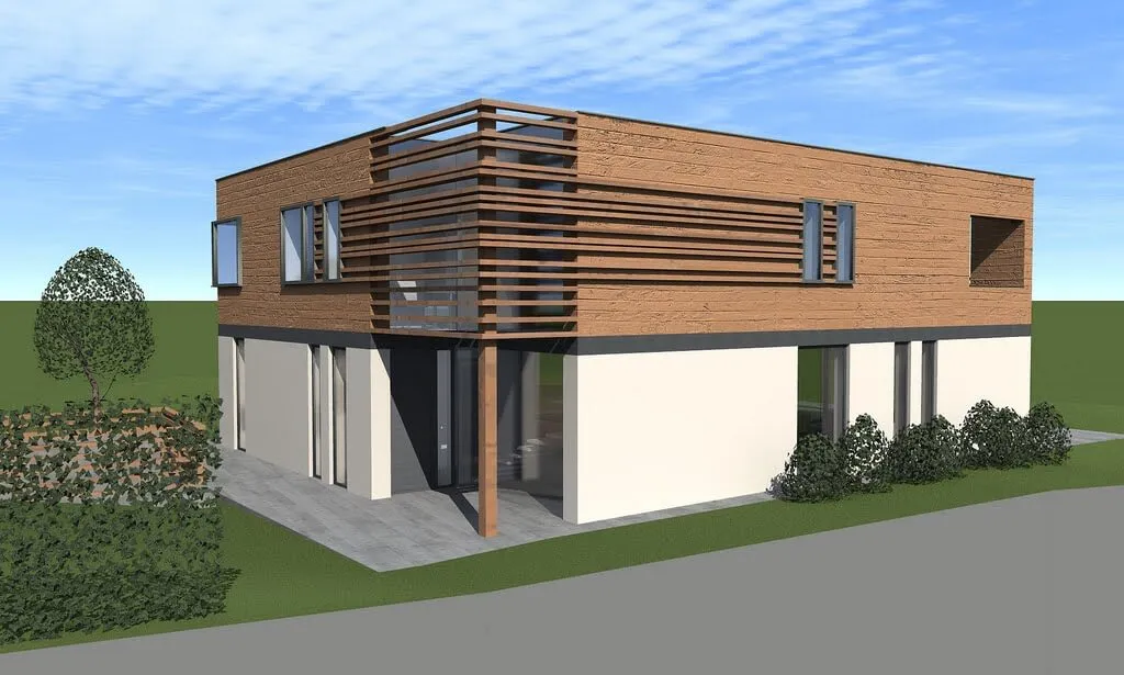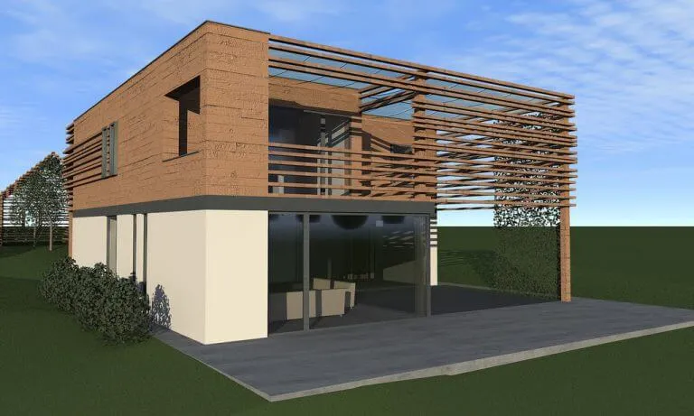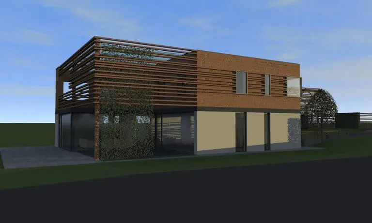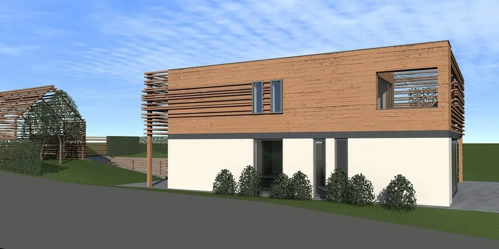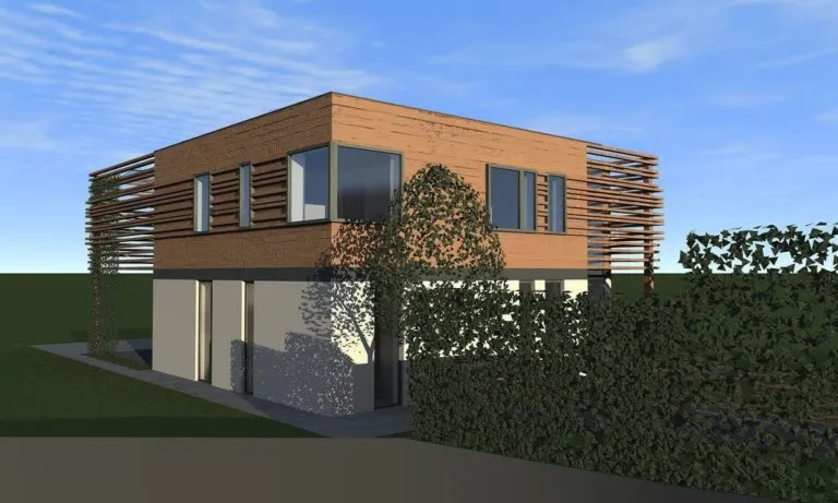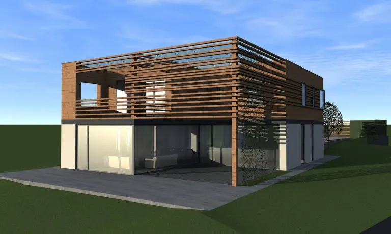 This family house is a good example of how a simple mass of a building can be made eye-catching through conscious architectural gestures.