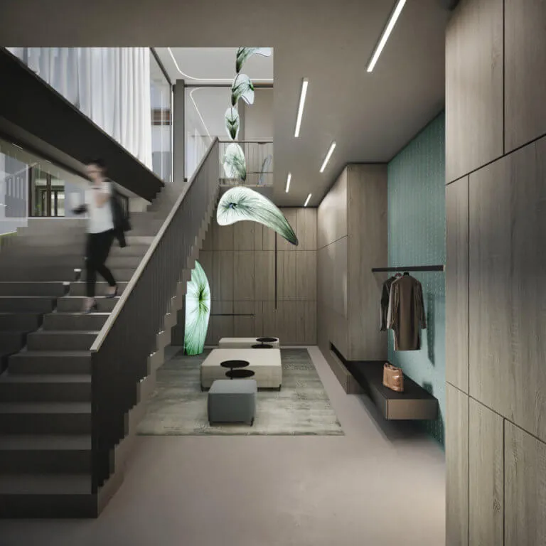 Consciously designed lighting, subdued colors and simple design furniture fill the spaces with measured elegance.