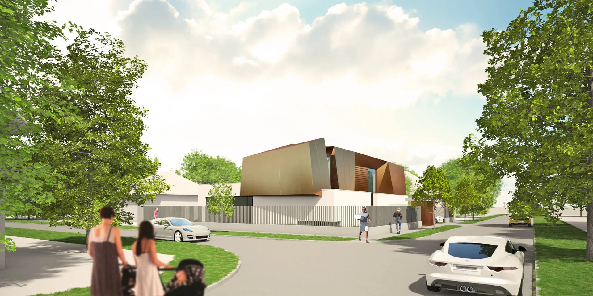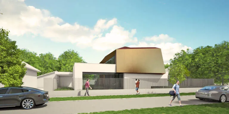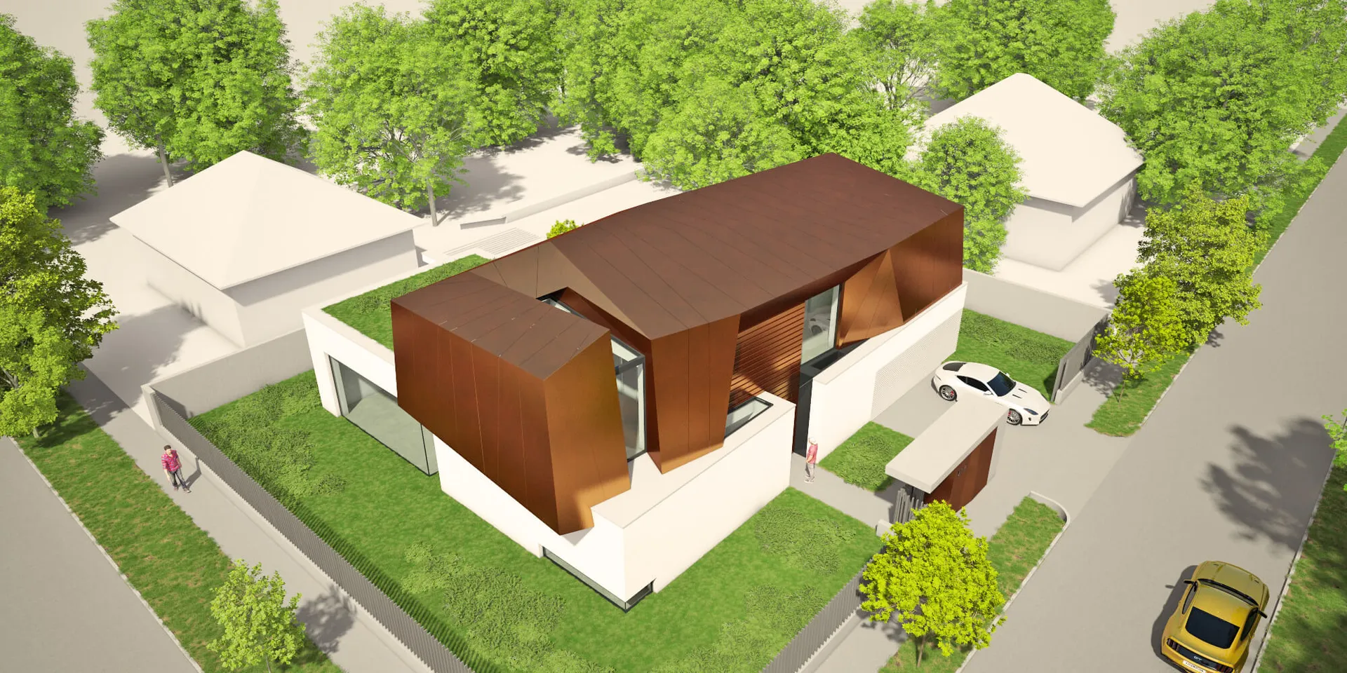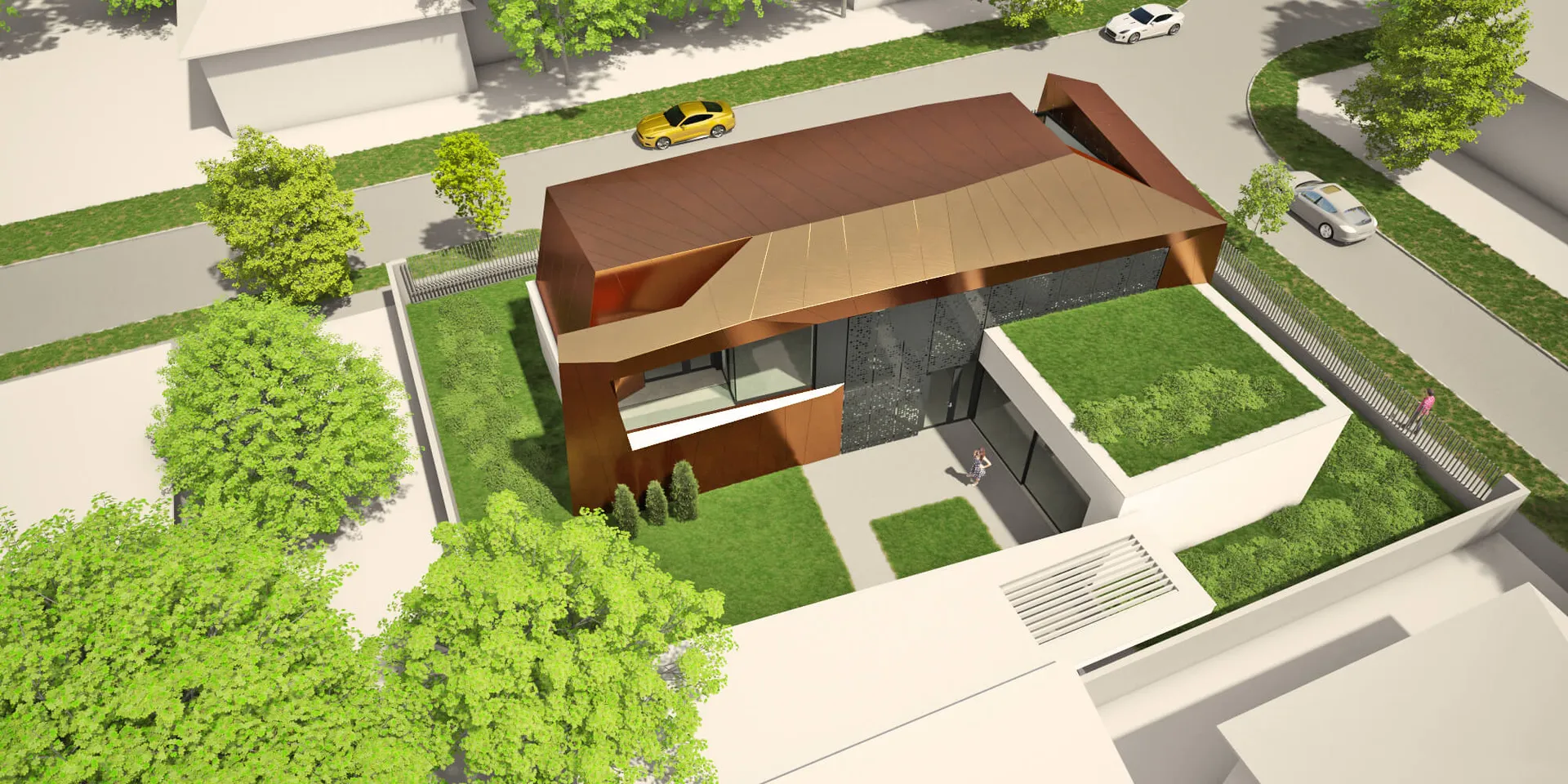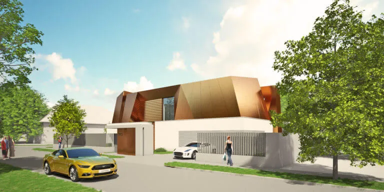 A robosztus épületet a burkolatok nemessége első pillantásra kiemeli környezetéből.