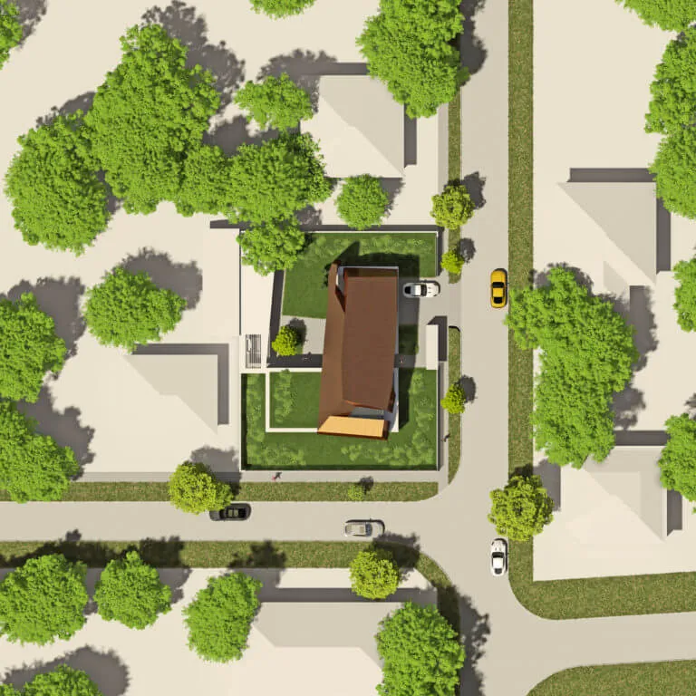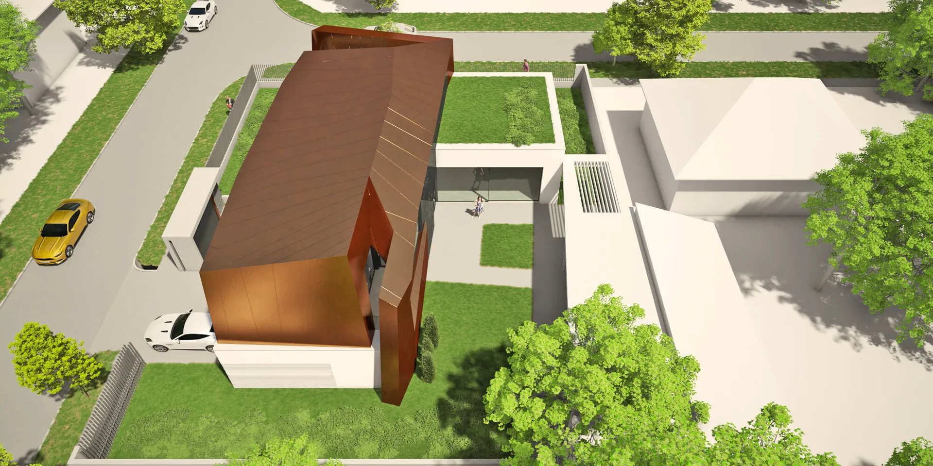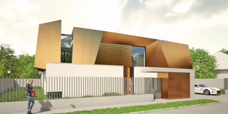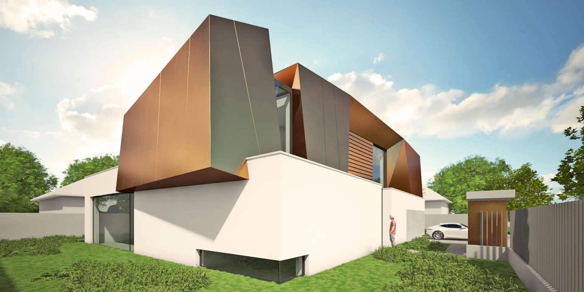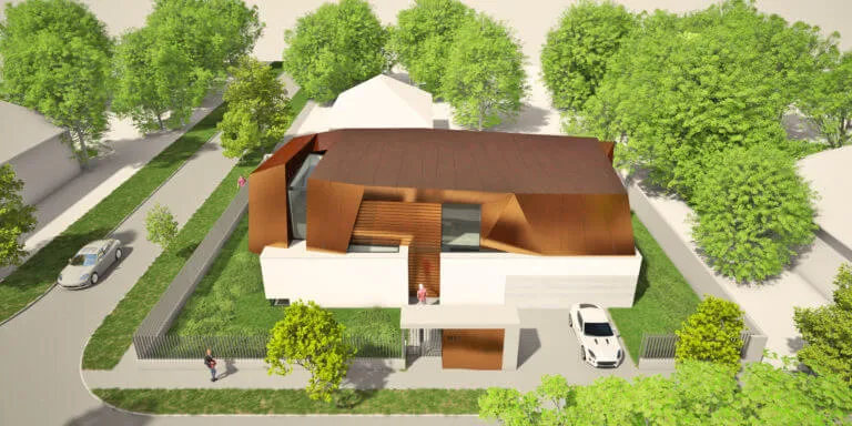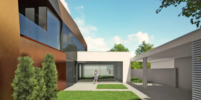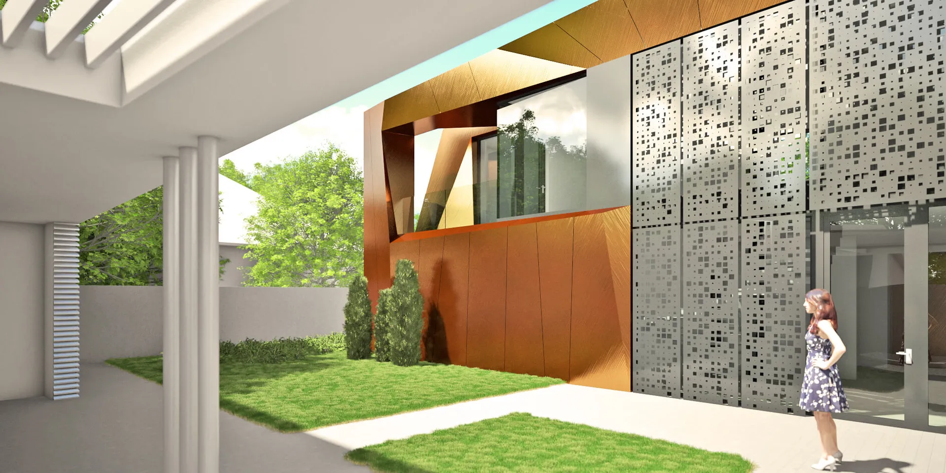A robosztus épületet a burkolatok nemessége első pillantásra kiemeli környezetéből.