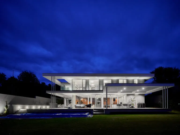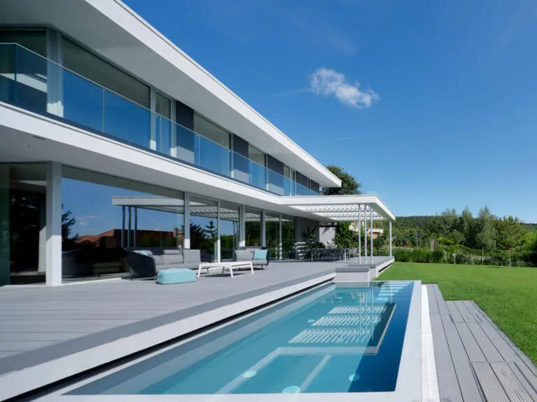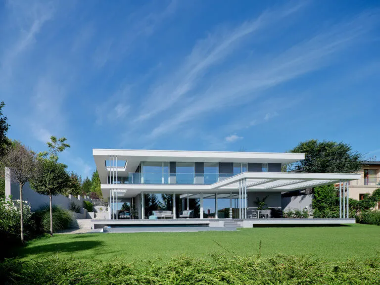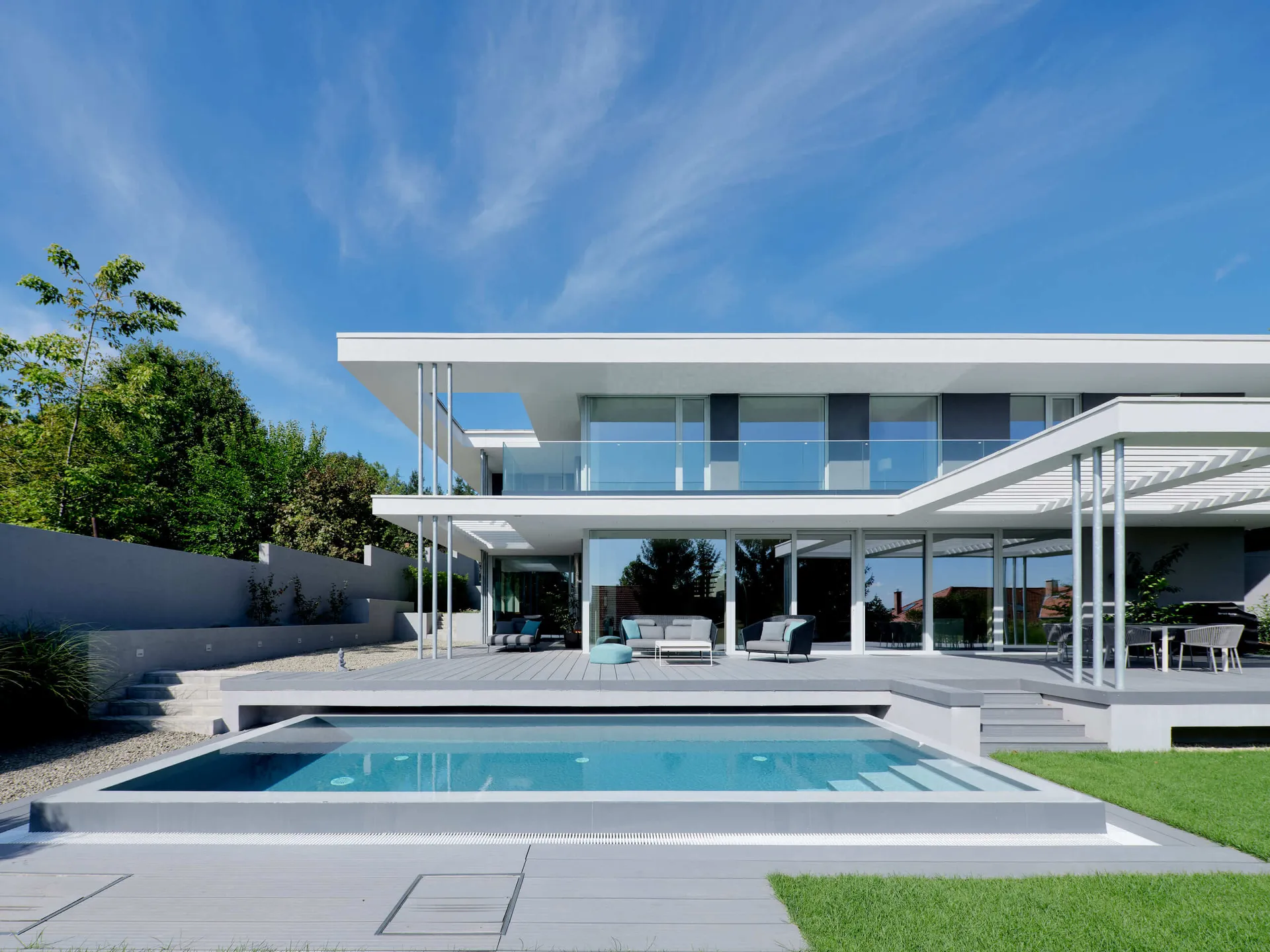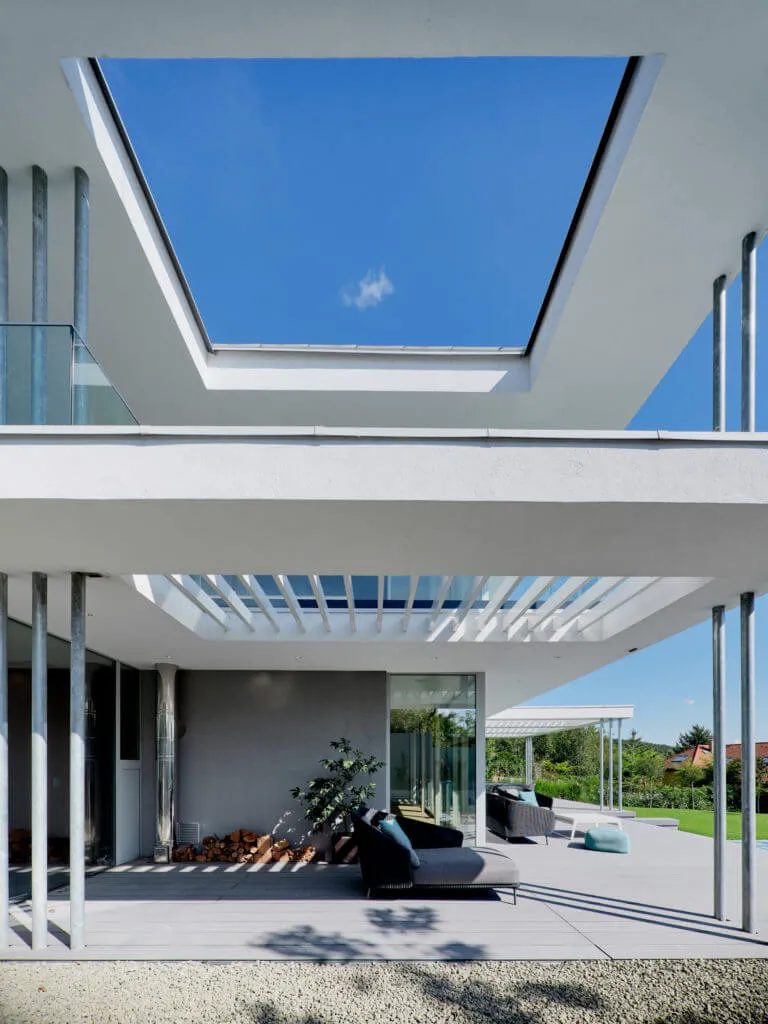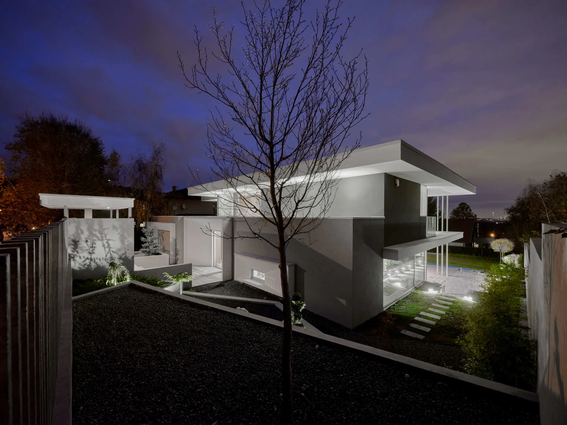 Mozgalmas, feltűnő és elegáns épület ez, amelynek a fa elemek adnak komolyságot.