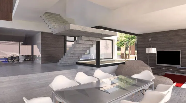 Nemes burkolatok és átláthatóság jellemzik e látványos családi házat